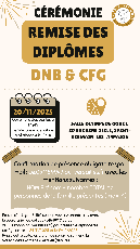 La remise des diplômes du DNB aura lieu le 20 novembre 2025 à 18 h, salle Olympe de Gouges.